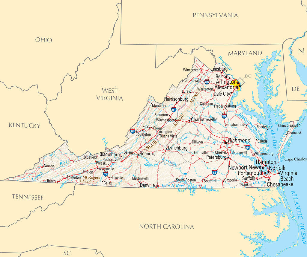 Map of Virginia VA Reference Map Framed Push Pin Map